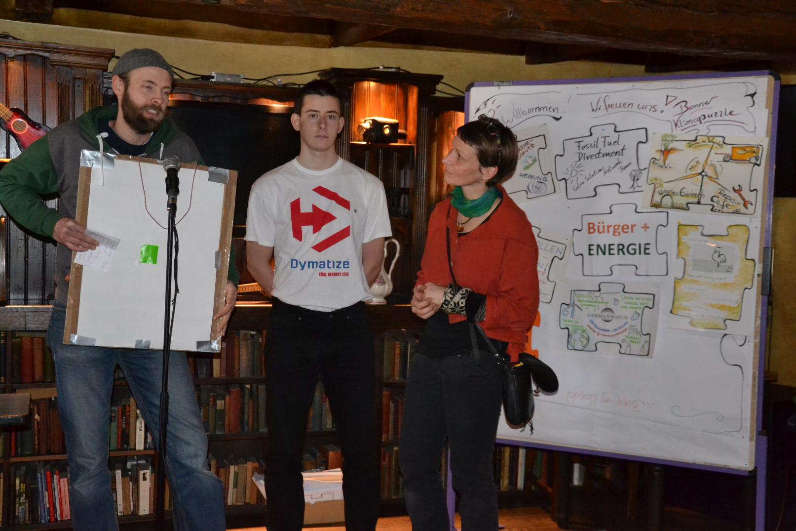 Auch unsere 2. Vorführung von Power to Change- die Energierebellion war sehr gut besucht,. Im Anschluss gabs die Info- und Ideenbörse. 12 Organisationen und Initiativen aus Bonn und Umgebung hatten Puzzlestücke mitgebracht und im gemütlichen Irish Pub an einem bunten Klimaschutzpuzzle für Bonn gebaut….