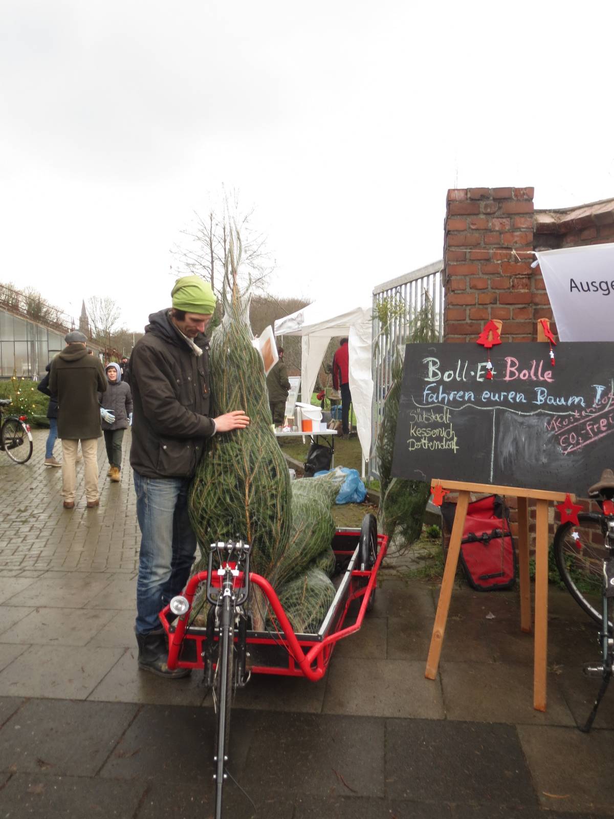 Dez 18: Ökologisch korrekte Weihnachtsbäume vom NaLa e. V, geliefert von Bolle Lastenrädern.