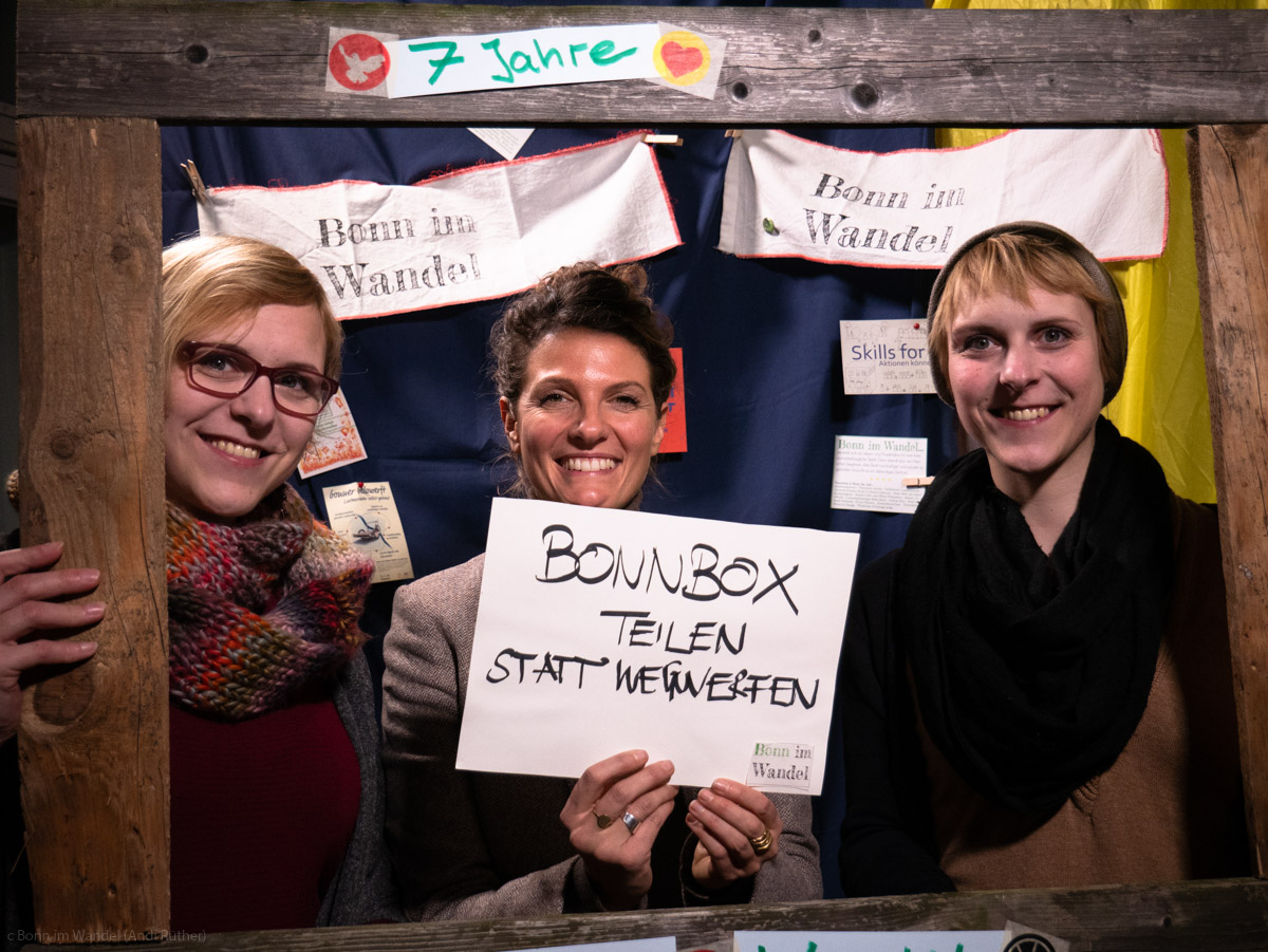 Wir stehen für eine positive und nachhaltige Vision für unsere Stadt. Wir setzten auf die Kraft der guten Ideen, der vielen Hände, Herzen, Füße und natürlich Fahrräder. Diese Fotogalerie erzählt vom siebten Bonn im Wandel Jahr. Von Ideen und Träumen, die Wirklichkeit werden hier in dieser Stadt. Von dem Potential gemeinsam etwas zu verändern. Je größer die Herausforderungen werden durch Klimawandel, Konsumterror oder Intoleranz, desto kreativer werden wir. Versprochen. Und wir werden immer mehr. Versprochen.