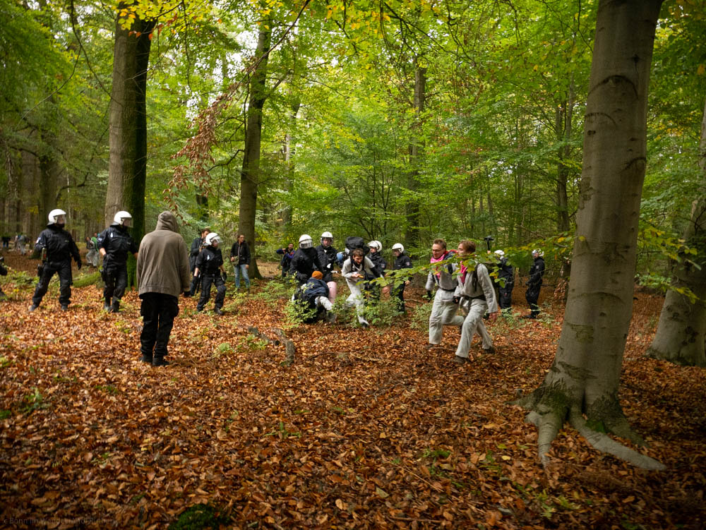 Okt 18: Nicht immer friedlich -Endegelände Aktion im Hambacher Forst. Foto Andi Rüther