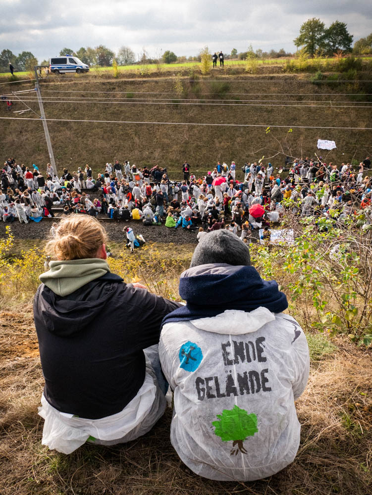 Okt 18: Ende Gelände blockiert Bahngleise der Braunkohlebahn. Foto: Andi Rüther