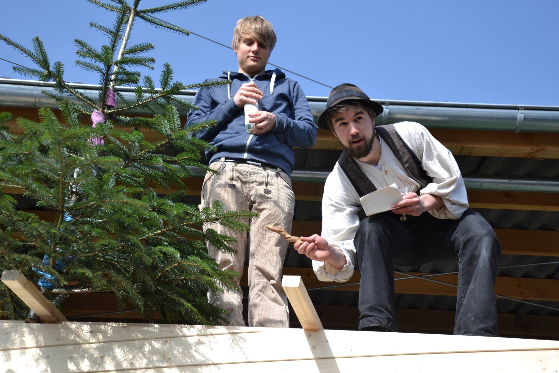 Dass die SoLaWi nun noch einen fahrbaren Hühnerstall hat, liegt an ein paar glücklichen Umständen: Einer engagierten Hühner AG, die sich dafür einsetzt, eine Herde der alten Hühnerrasse Maran aufzubauen. Die Tiere legen zwar nicht so viel Eier, sie setzen aber auch Fleisch an, eine klassische „Zweinutzungsrasse“ also. Die Eier- und Fleischproduktion ist eigentlich ein Nebeneffekt, vor allem sollen die Tiere wertvollen Mist für den SoLaWi-Kompost liefern. Als es nun mehr und mehr Tiere wurden, kam glücklicherweise ein Zimmermann auf der Walz vorbei. Ein SoLaWi-Mitglied ist Holzbauingenieur. Landwirte, Zimmermann und Ingenieur haben dann mit vereinten Kräften die Pläne für das self-made Mobil erarbeitet und schließlich auch umgesetzt. Nun ist der Stall fertig, stattlich, geräumig und beweglich und fast zu schön für Hühner, fanden manche.