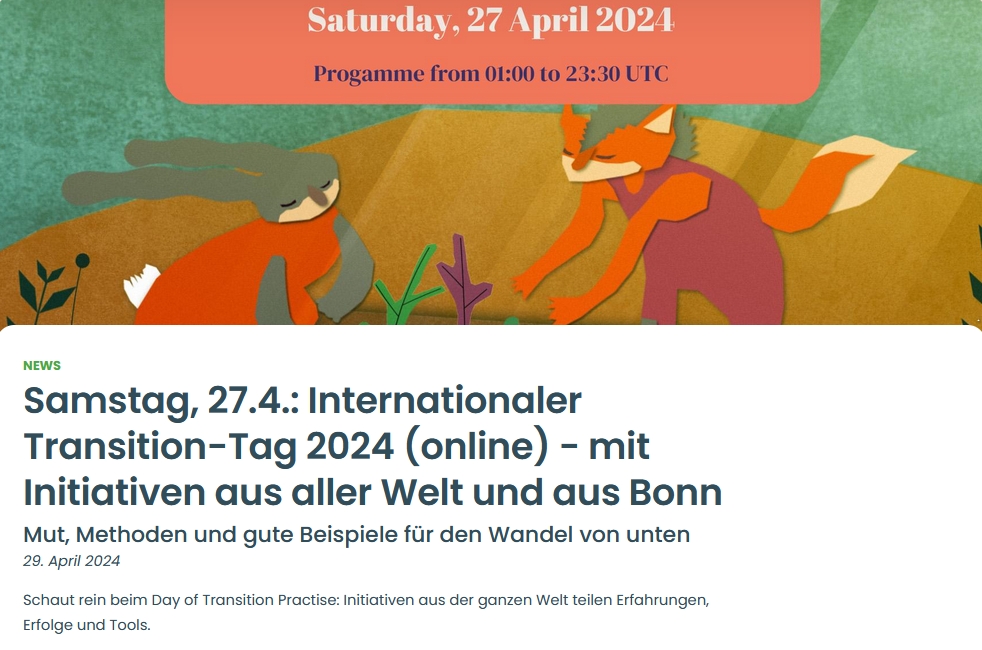 Screenshot vom Programm des internationalen Transition Day am 27.04.24 Bonn im Wandel war dabei