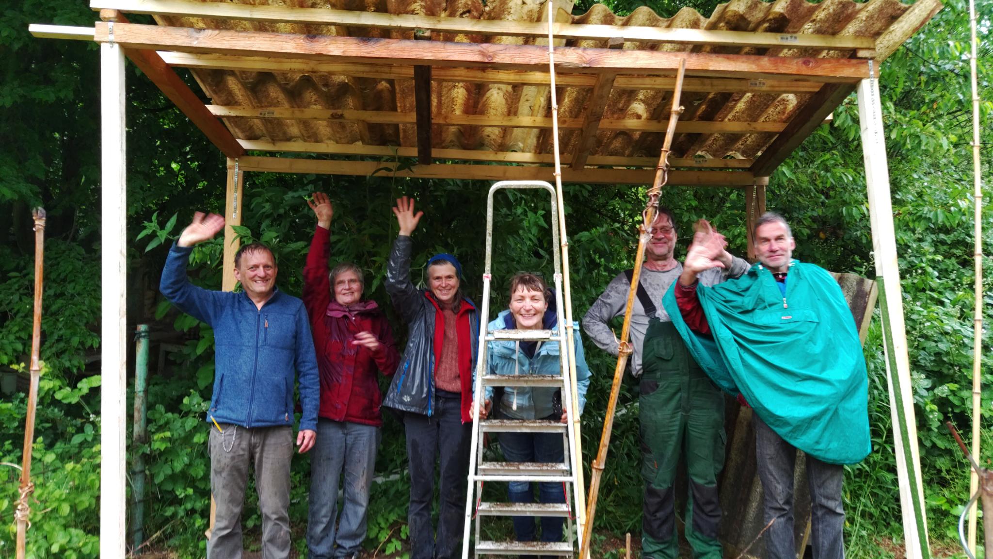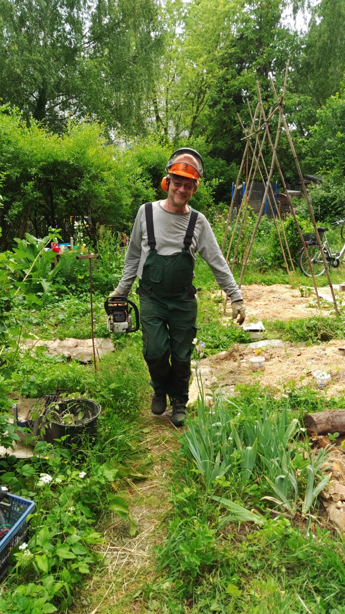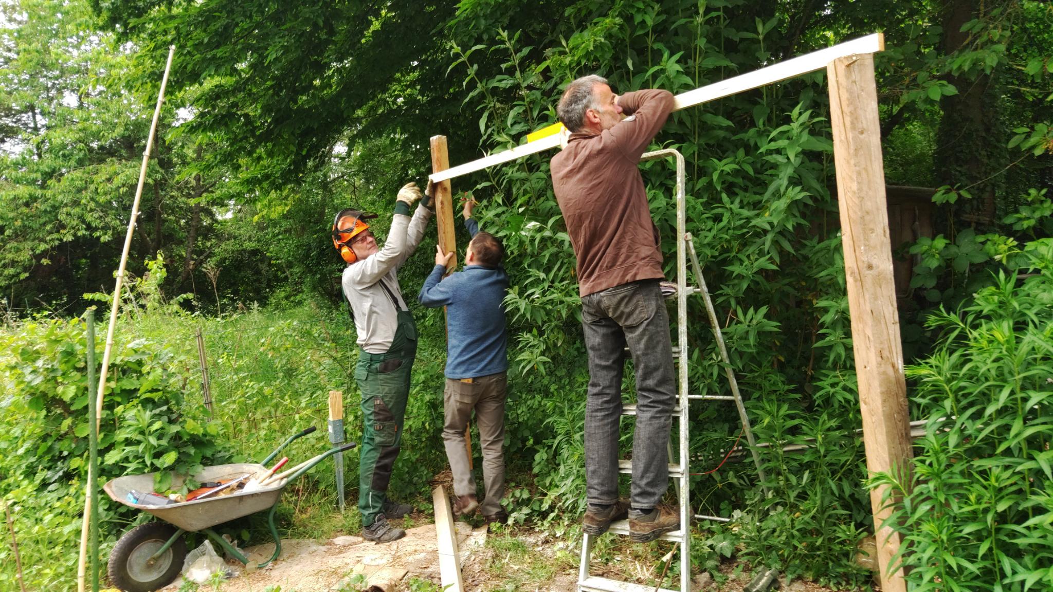 Frühjahr 25: Vorbereitungen für das neue Tomatenhaus im Bonn im Wandel Gemeinschaftsgarten. Foto: Gesa Maschkowski