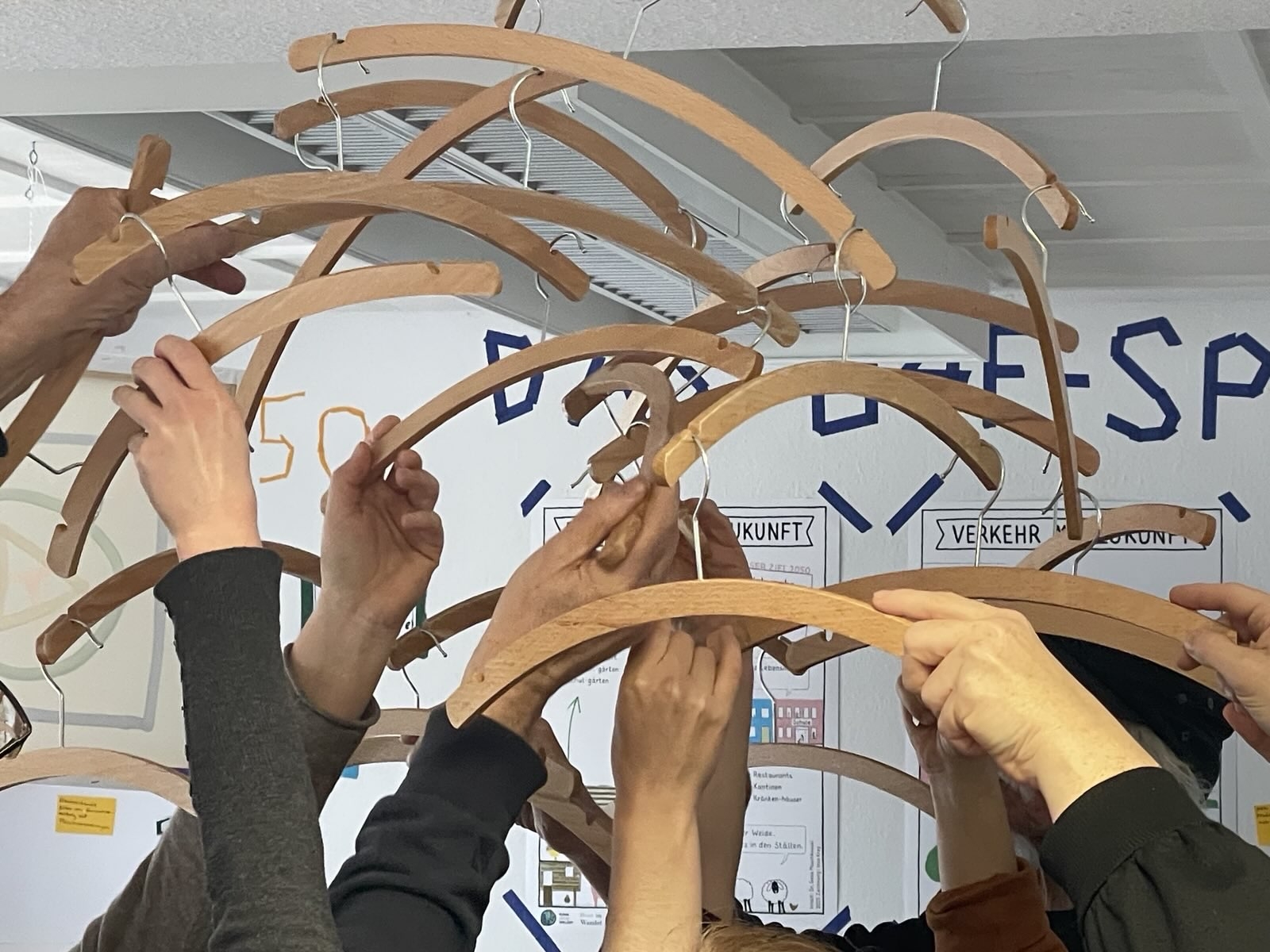 Balance halten im Team – ein Spiel aus dem System Thinking Playbook beim b4F Pop Up Atelier. Foto Susannen Willner