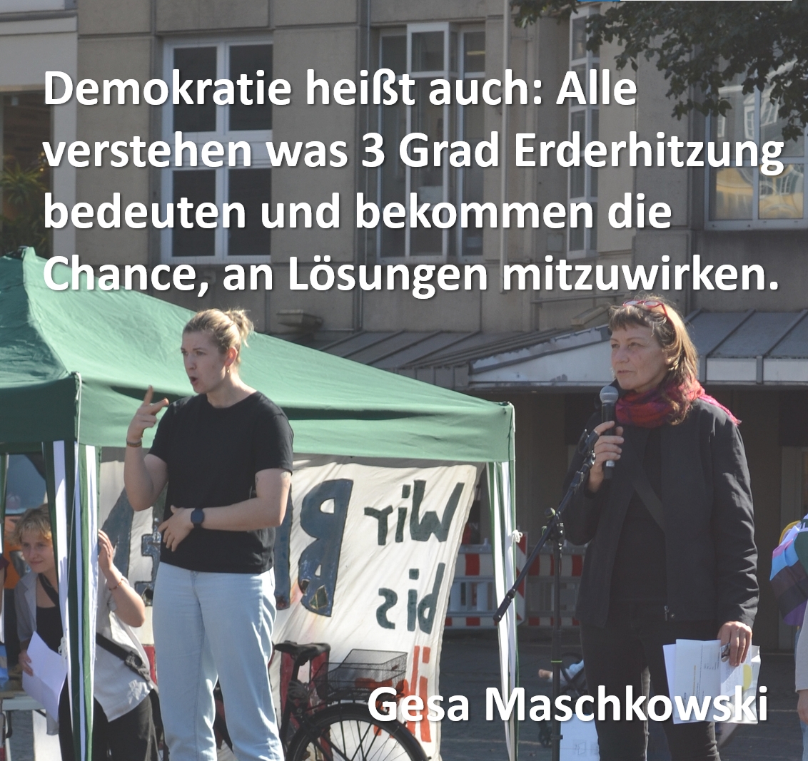 Sep 24: Rede auf dem globalen Klimastreik der FridaysForFuture. https://bonnimwandel.de/demokratie-heisst-alle-koennen-bei-der-transformation-mitwirken/