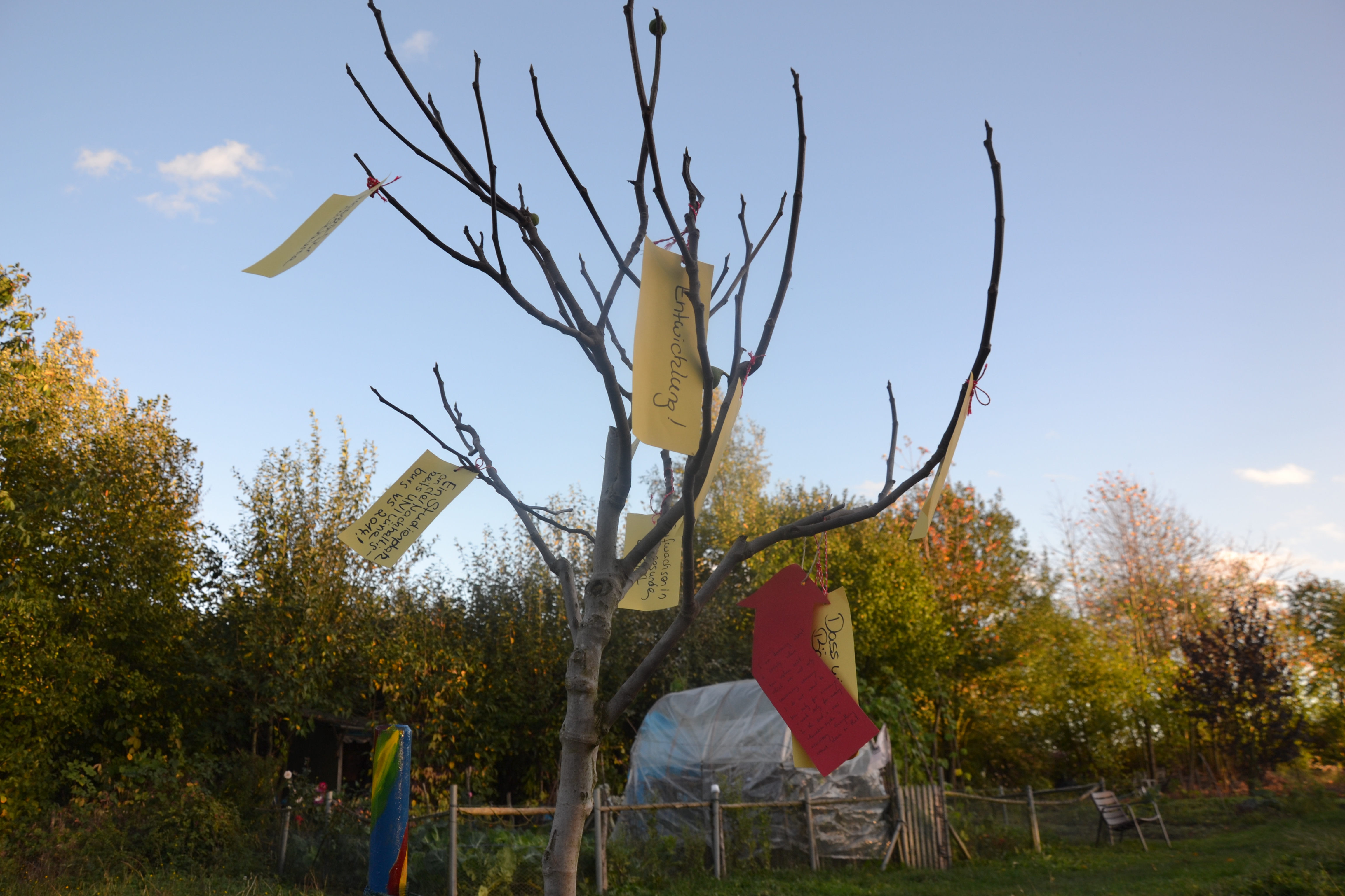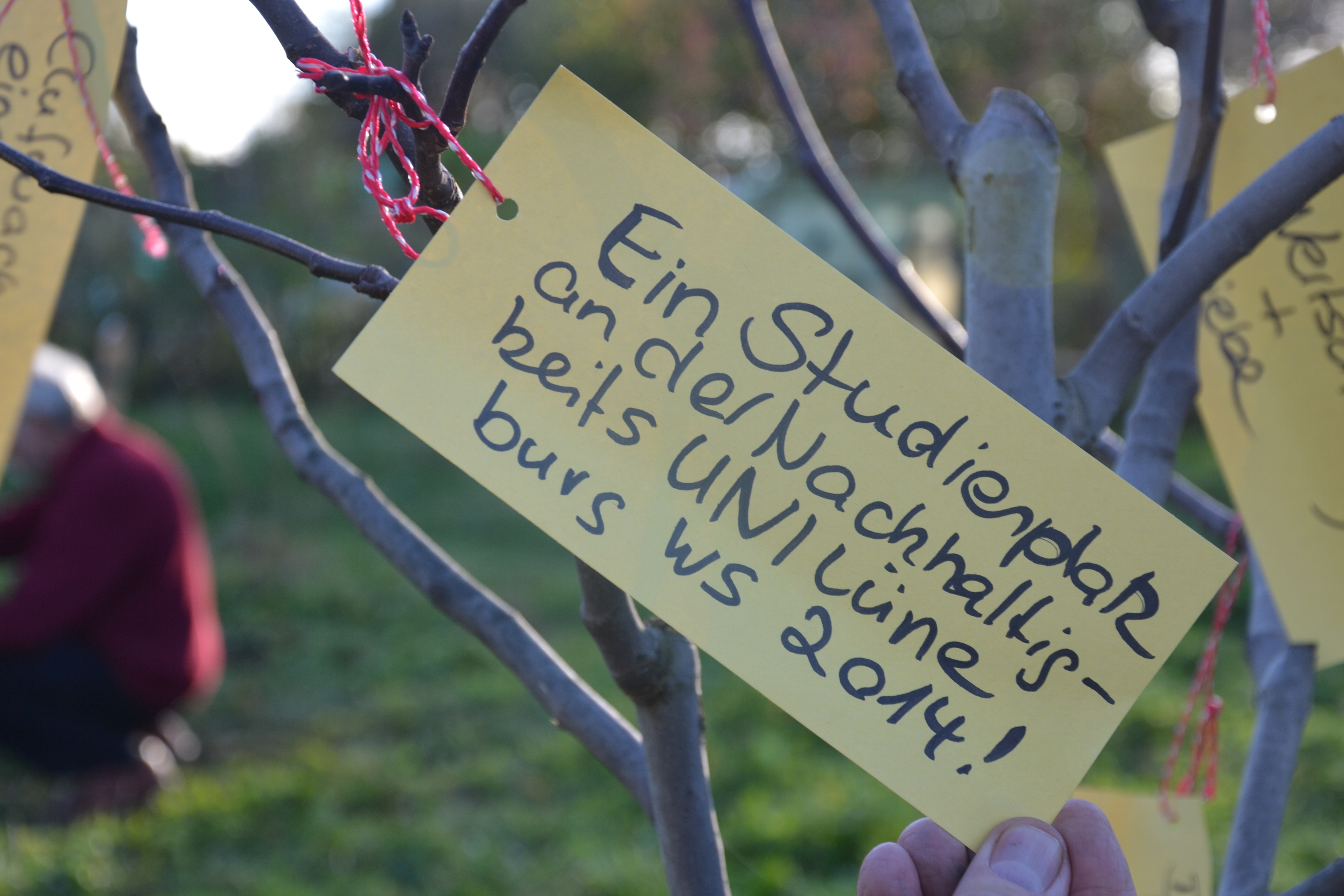 Die Baumpflanzaktion am Transition Sonntag war ein lustiges und inspirierendes Treffen. Es hat Spaß gemacht in einer Gemeinschaft etwas geschafft zu haben und spontane Kreativität aufkommen lassen.Die bunten Schilder und Pfähle zeugen davon. Mit lecker Essen und viel Lachen haben wir die Bäume an ihren neuen Standort gesetzt, behangen mit guten Wünschen für die Zukunft. Hier ein paar Impressionen….